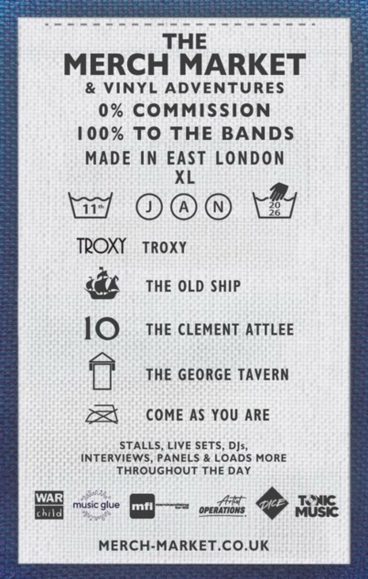 Quest’anno, il Merch Market sbarcherà a Londra, con il Troxy che costituirà il fulcro principale per bancarelle, interviste dal vivo, spettacoli e altre sorprese. Altri locali partecipanti includono The George Tavern – una passeggiata nelle vicinanze che ospiterà band e bancarelle tutto il giorno – insieme a The Old Ship e The Clement Attlee, che ospiteranno ancora più bancarelle, interviste ed eventi legati ai libri. Grazie a Tonic Music, il pianoforte di Terry Hall farà la sua comparsa anche al Merch Market.
